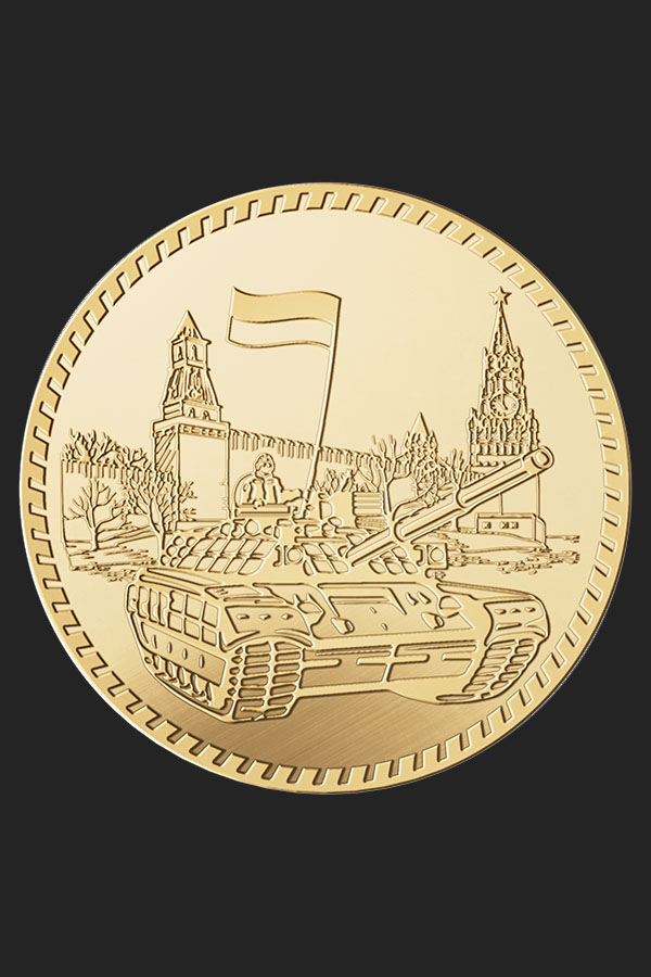 Ще за декілька місяців до війни Валерій Залужний дав інтерв’ю, де прозвучав головний меседж всім українцям: "Вірте ЗСУ, вірте Залужному, вірте Павлюку, вірте Шапталі, ми - люди, які все серце і душу віддають". Тепер, за 200 днів війни, напевно, не лишилось тих, хто не вірить ЗСУ. Ще у цьому інтерв’ю було запитання: «Чи не хотіли би ви проїхатись на танку червоною площею?», на яке Залужний твердо відповів: "ТАК, ХОТІВ БИ". Чого йому і бажаємо :) На реверсі зображено Валерія Залужного на танку на тій самій площі. ВІРИМО ЗСУ!